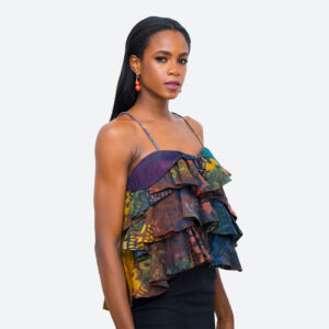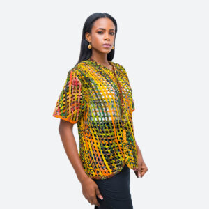 •100% cotton top •high V -neck beading •slanted Press buttons up