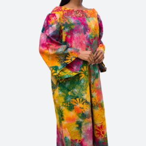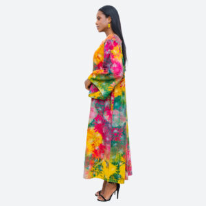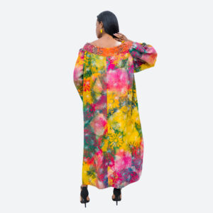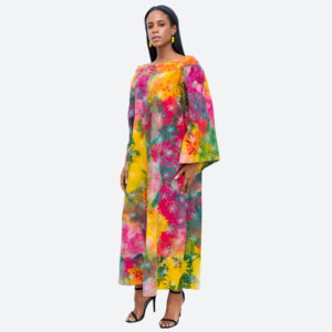 •100% embroidered linen •wide round neck beading •trumpet sleeves •ankle length •A- shape