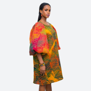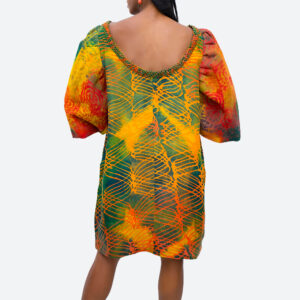 •100% silk puff sleeves •neck beading • low back cut •100% linen fabric dress