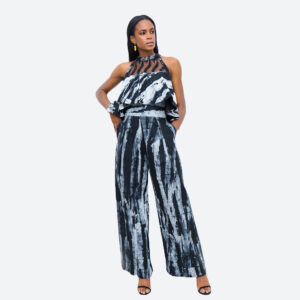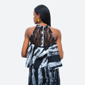 •100% cotton •two pieces (pants and top) •beaded net top and back buttons •wide leg pants