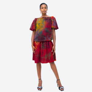 •100% Chiffon Silk fabric •puff sleeves •elastic waist band •off-shoulder dress