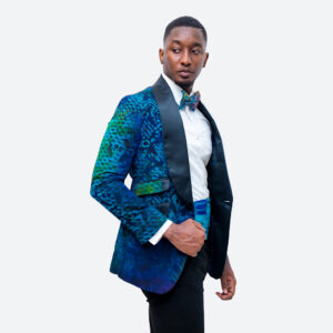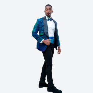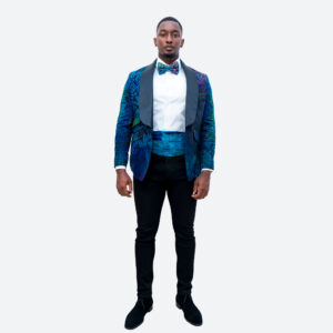 •100% cotton fabric •Satin Shawl Lapel Collar •Cotton Cummerbund with hook fastening •Cotton Bow tie with hook fastening •Flap and Welt Pocket •Button up