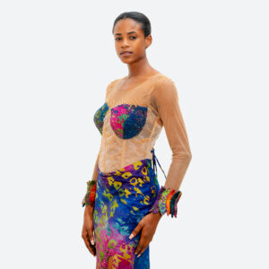 •100% cotton •long sleeves netting •beaded cuff design •beaded breast cup •beaded side slit •back lace down
