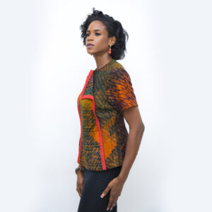 •65% rayon , 45% sack linen fabric •press buttons and round buttons •short sleeves •high round neck