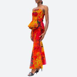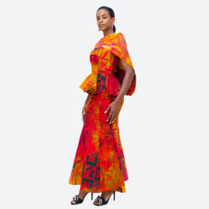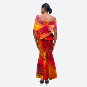 •100% cotton fabric •two piece •detachable Shawl •strapless top with back zipper •long A-shape skirt with back zipper