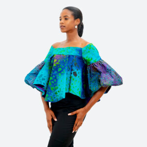 •100% cotton •off shoulder •Asymmetrical Pleats •Puff sleeves